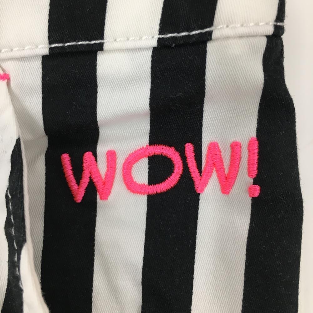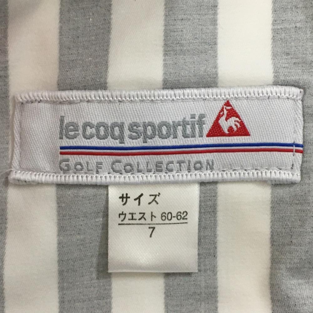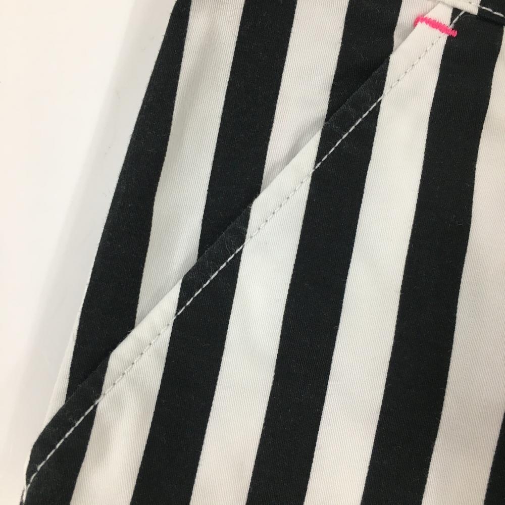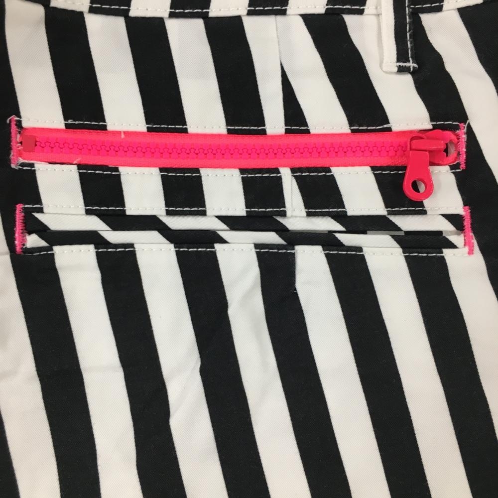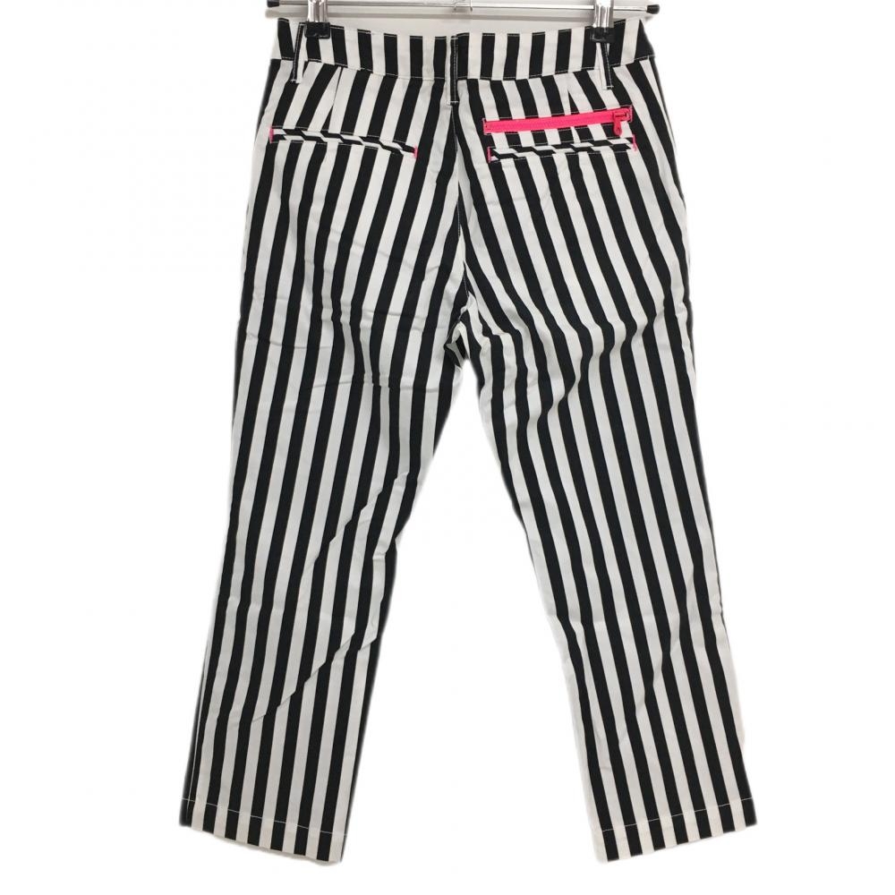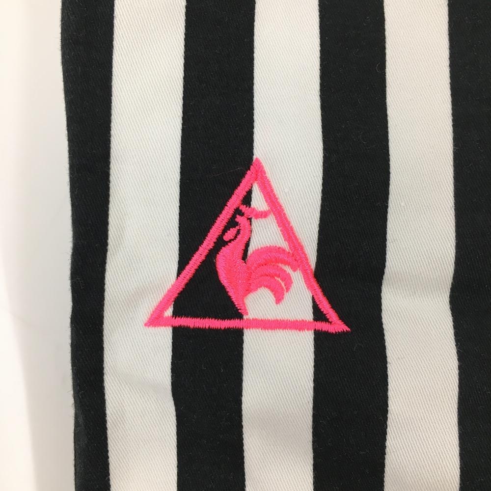 【美品】ルコック パンツ 白×黒 ストライプ ロゴ蛍光ピンク レディース 7 ゴルフウェア le coq sportif