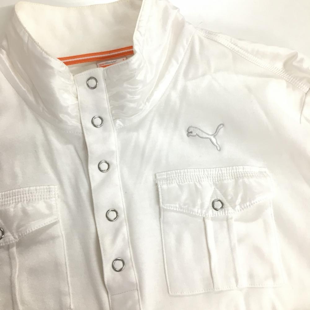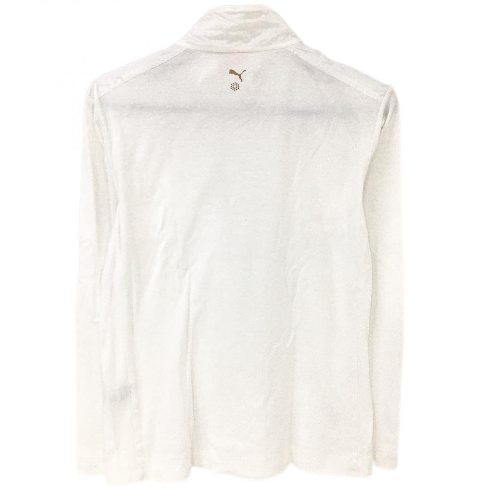 プーマ 長袖ポロシャツ 白 スナップボタン 異素材 メンズ S ゴルフウェア PUMA