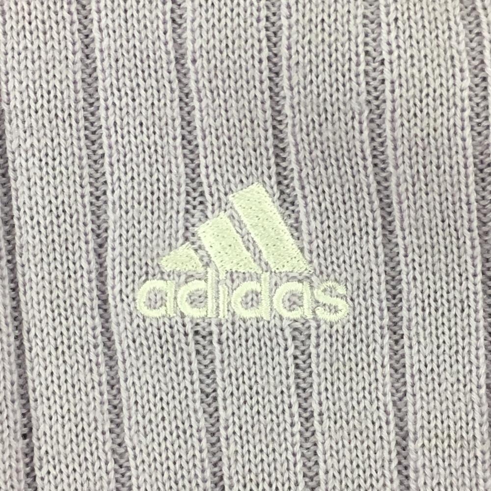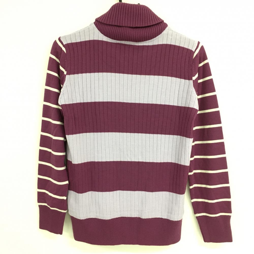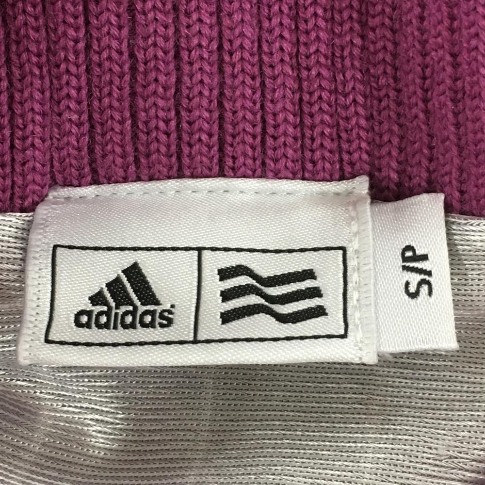 【美品】アディダス 襟付ニットジャケット パープル×白 ボーダー 蓄熱裏地 ウール混 レディース S/P ゴルフウェア adidas
