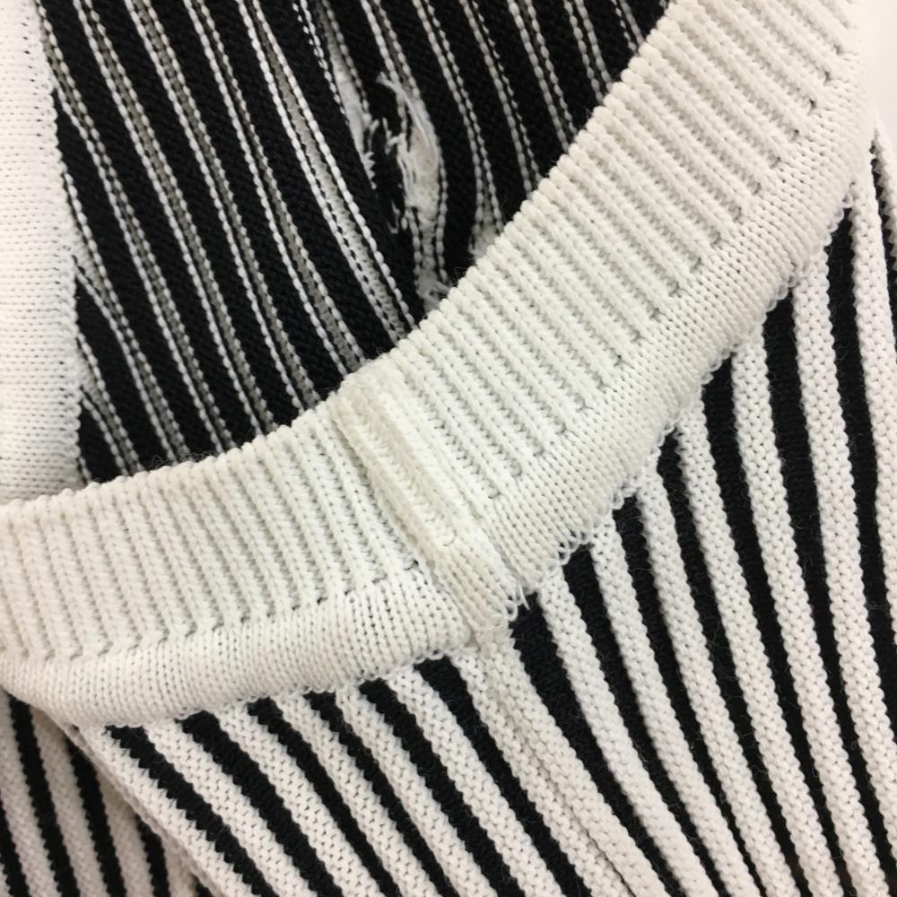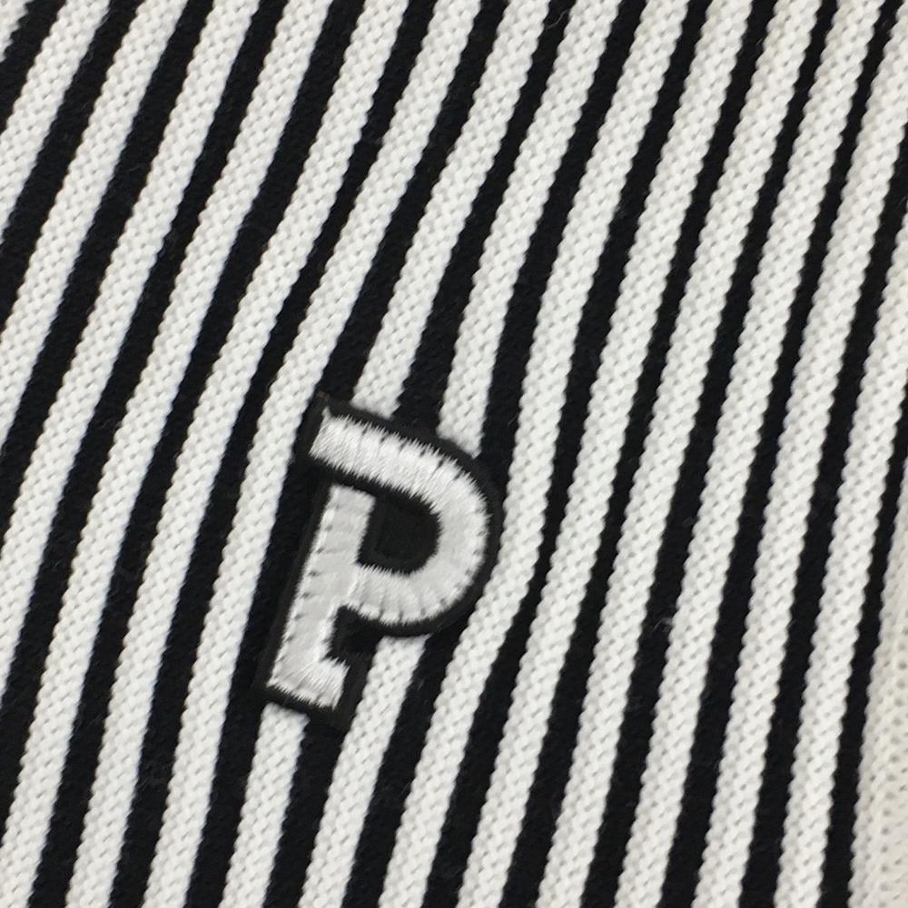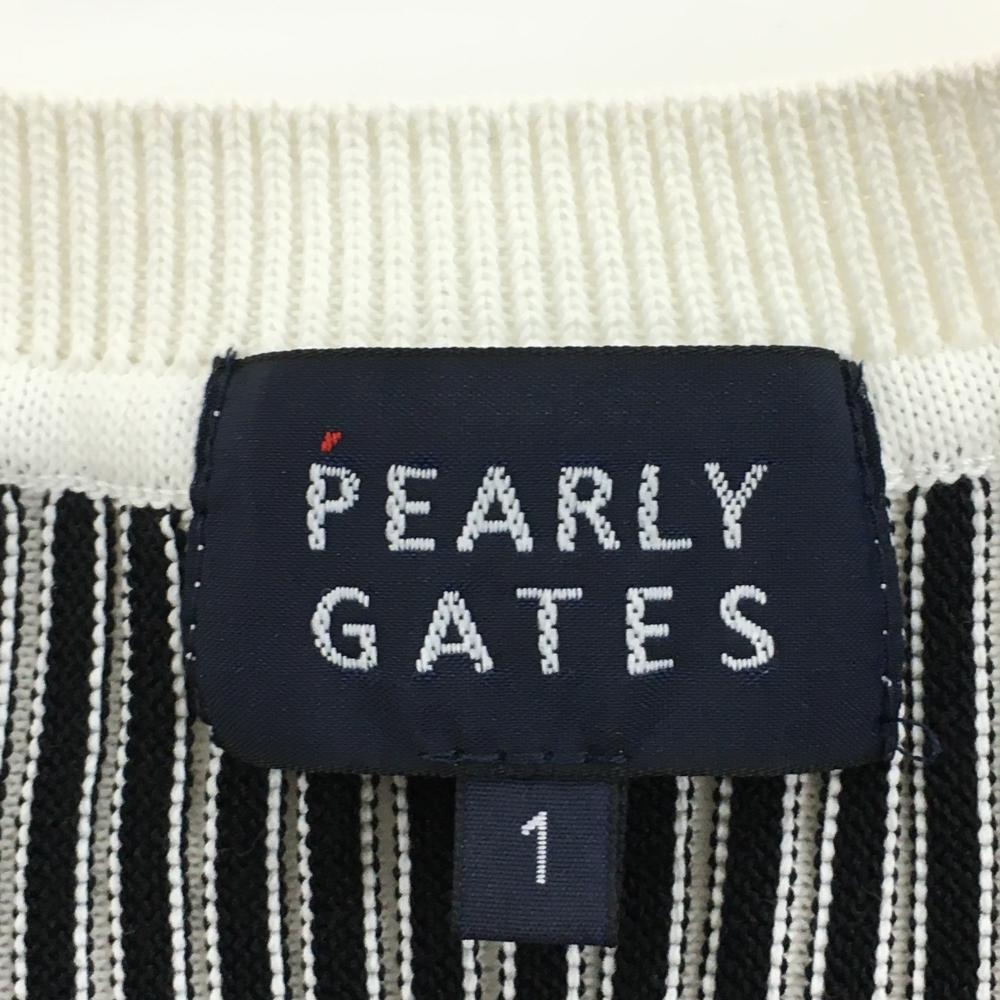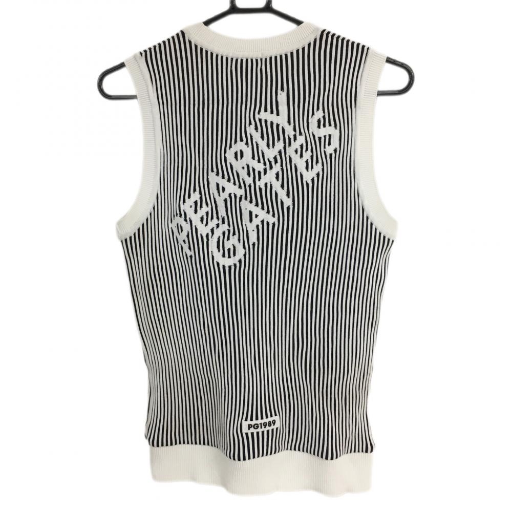 パーリーゲイツ ニットベスト ダークネイビー×白 ストライプ編み 日本製 レディース 1(M) ゴルフウェア 2022年モデル PEARLY GATES