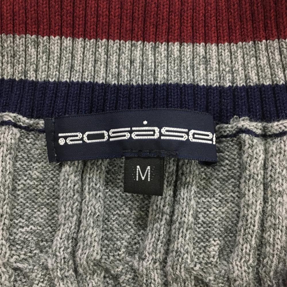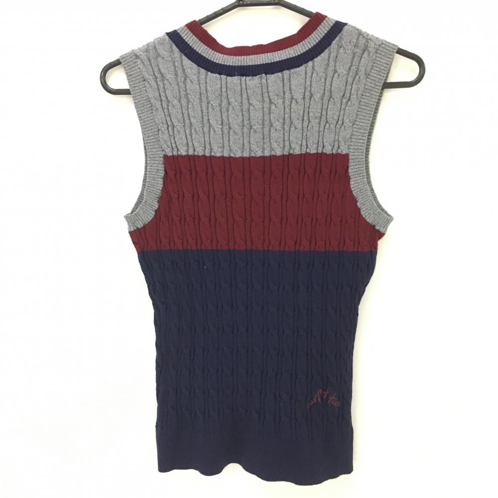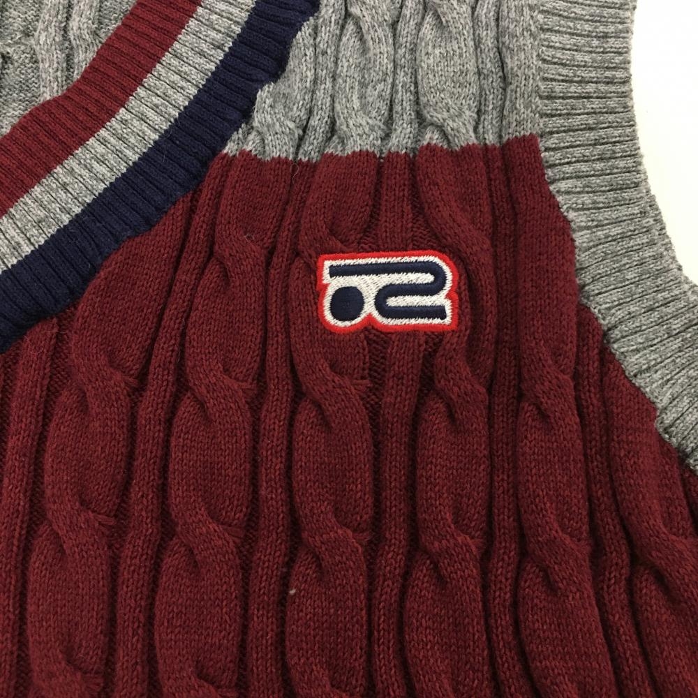 【超美品】ロサーセン ニットベスト グレー×ボルドー×ネイビー Vネック ケーブル編み レディース M ゴルフウェア Rosasen